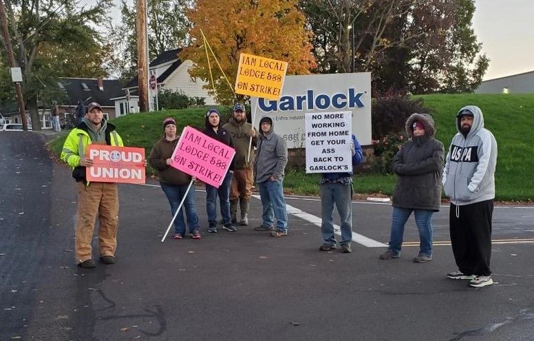 Approximately 280 IAM Local 588 (District 65) members from Garlock Sealing Technologies in Palmyra, NY went on strike Monday, November 1 after voting against ratifying a four-year contract. Members, who are now on the picket line outside Garlock’s entrances, voted overwhelmingly to reject the company’s offer...